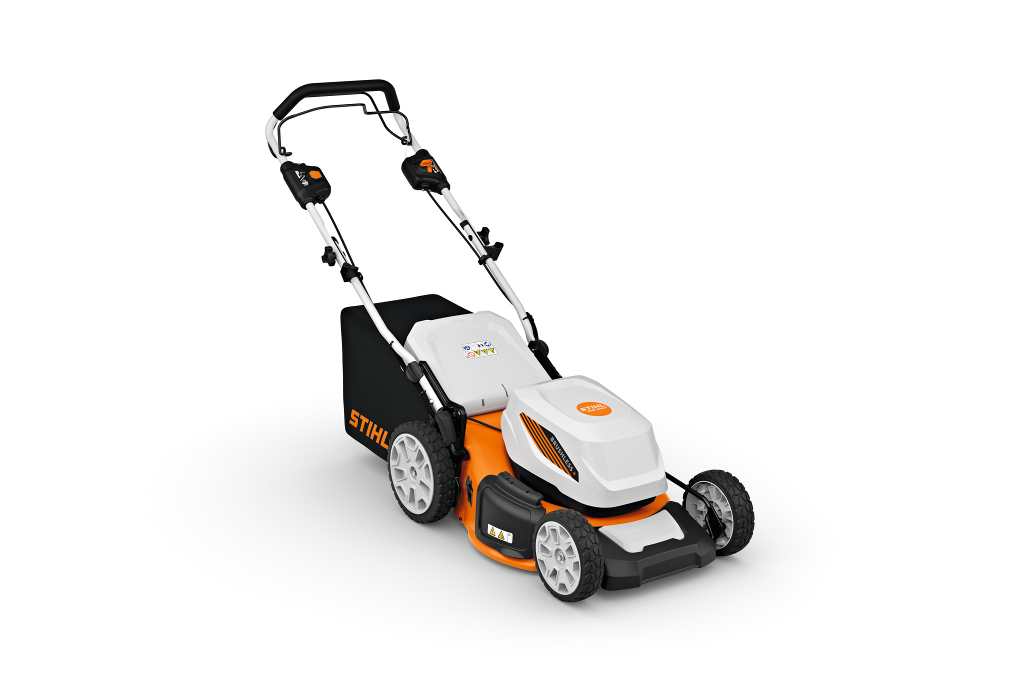 The STIHL RMA 348 V has a robust sheet steel housing and central cutting height adjustment, which allows you to choose the desired cutting length in 7 settings from 25 mm to 100 mm. The textile grass catcher box with 60-litre volume is easy to empty. Thanks to the folding handlebar, you can store the battery mower compactly and transport it effortlessly.